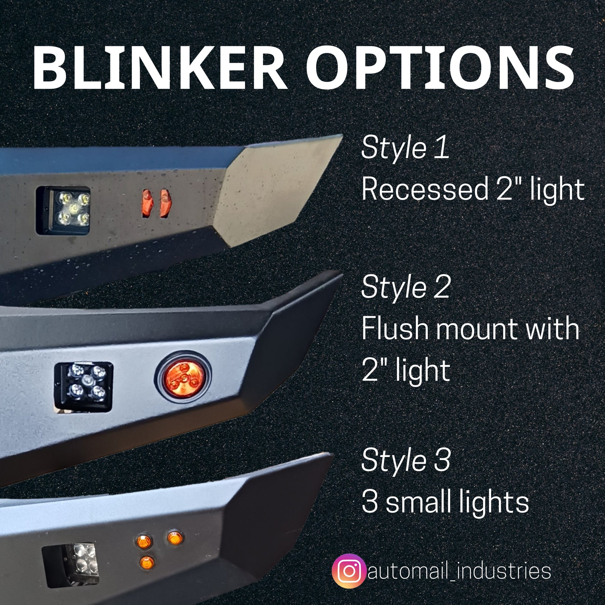 Specify in Buyers note which blinker you want, (see pics) They are all the same price. If you don't specify we will default to recessed blinker option and that's what you will receive. Thanks!